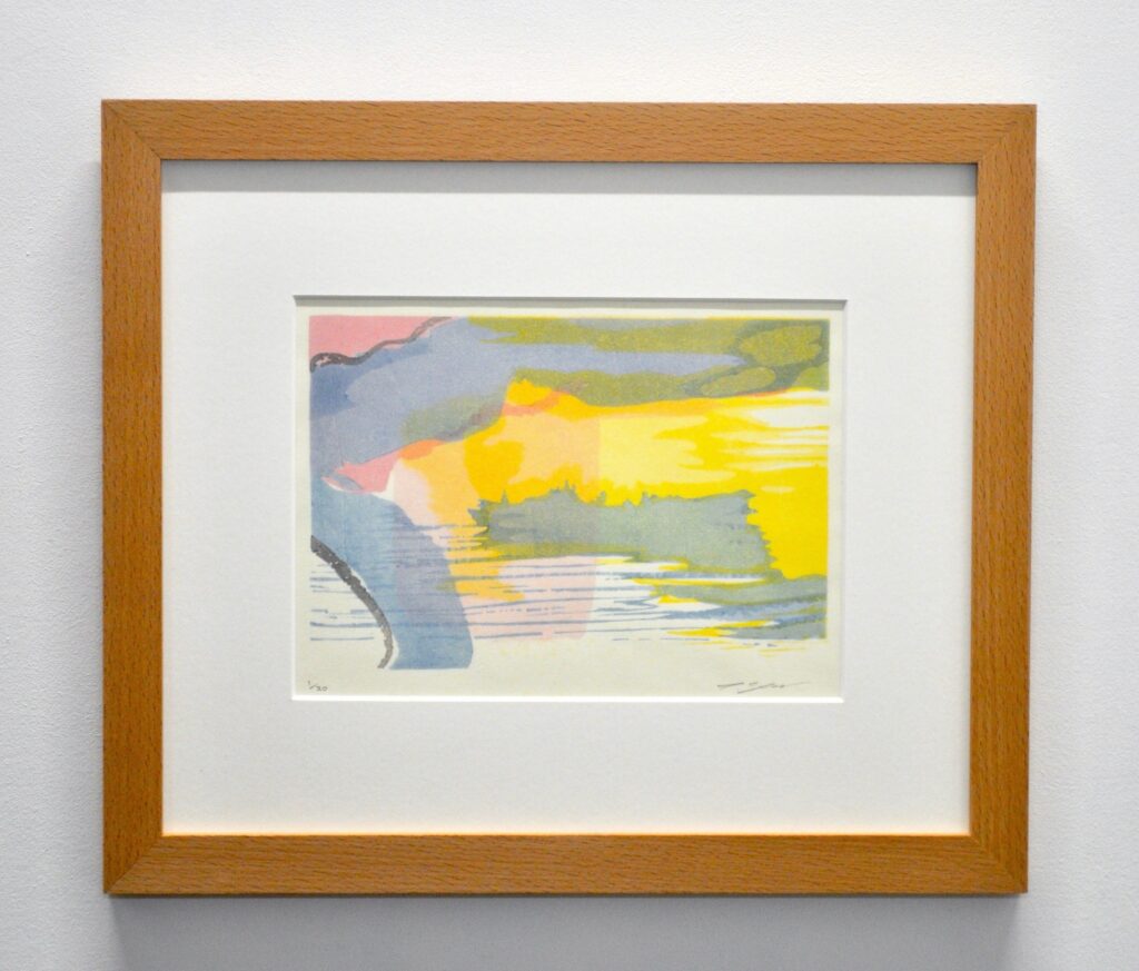 The print was created using three carved woodblocks, employing reduction printing mid-process to achieve two distinct depths of hirazumi or flat colour, and a controled use of the baren to create mokume-zuri, which reveals the woodgrain from the woodblock. The time-sensitive nature of Mokuhanga means that the complete printing process is achieved in just three days, preserving the immediacy, spontaneity and originality of the work.